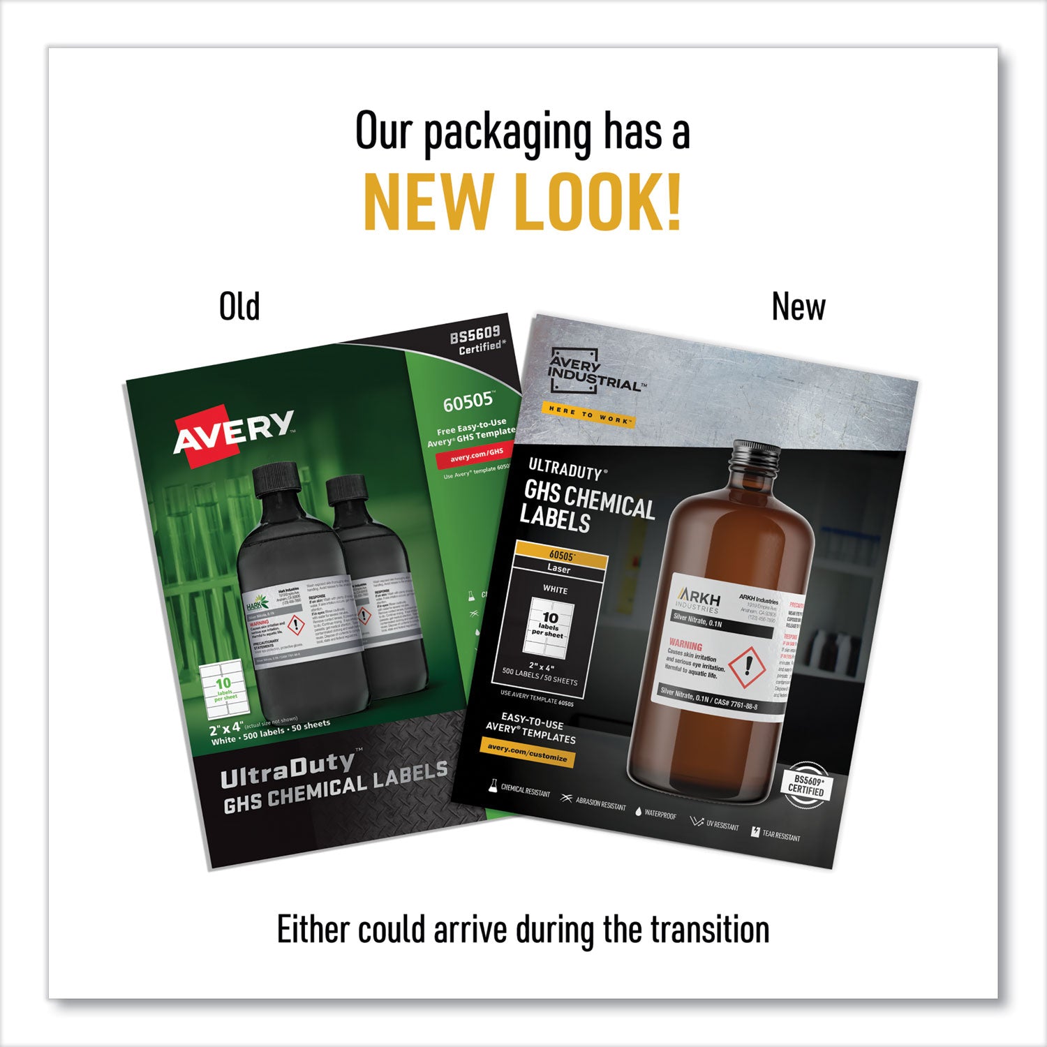 Avery UltraDuty GHS Chemical Waterproof and UV Resistant Labels, 2 x 4, White, 10/Sheet, 50 Sheets/Box