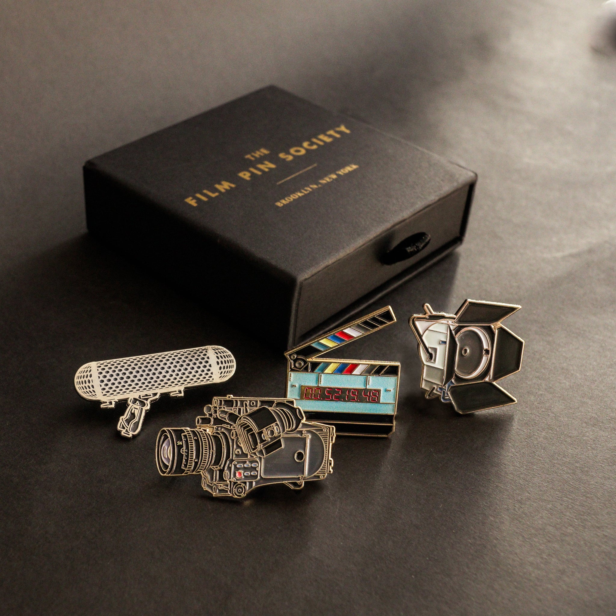 Start your own (pin) production with this awesome Cine Production box set! It comes with four pins from our collection.