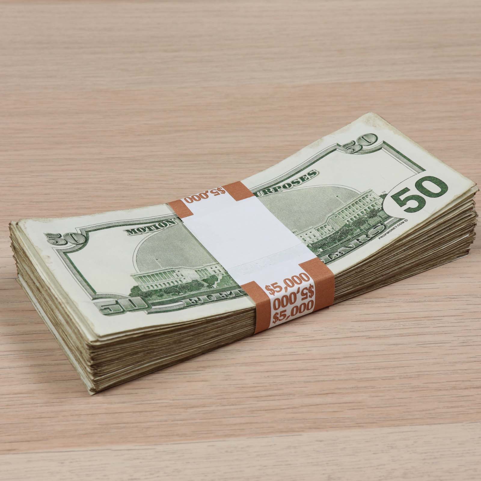 Our $5,000 2000 Series Aged Full Print Stack is perfect for film, TV, advertising, music videos, and more. This stack includes one hundred $50 2000 Series Aged Full Print bills for a total of $5,000. The non-glossy bills feature unmatched quality, realistic detail, and are double sided. Plus, you'll get the money band and the closest look to real money without breaking the bank.