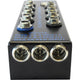 The new PSC PowerStar Mini Triple Play power distribution system provides a convenient way of distributing clean, quiet, reliable 12Vdc power to all of your ENG Bag and Small Cart based audio equipment from one or more rechargeable batteries. The PSC PowerStar Mini Triple Play features nine main outputs. Each of these outputs is designed to deliver up to 2 amps of continuous current. The PowerStar Mini Triple Play has a global (total) current limit of 10 amps. A top panel mounted power switch controls the entire operation. This power switch is a three-way design. When switched to the left, only the USB power outputs connectors will be powered on. This allows continued charging of your USB devices such as an iPhone tm while the rest of your system is powered off. When switched to the center position, everything is turned off including the USB ports. When switched to the right side, everything including the USB connectors is powered on. There is also one connector that is always on and is not controlled by the power switch. This connector is easily identified by the blue ring surrounding the connector.