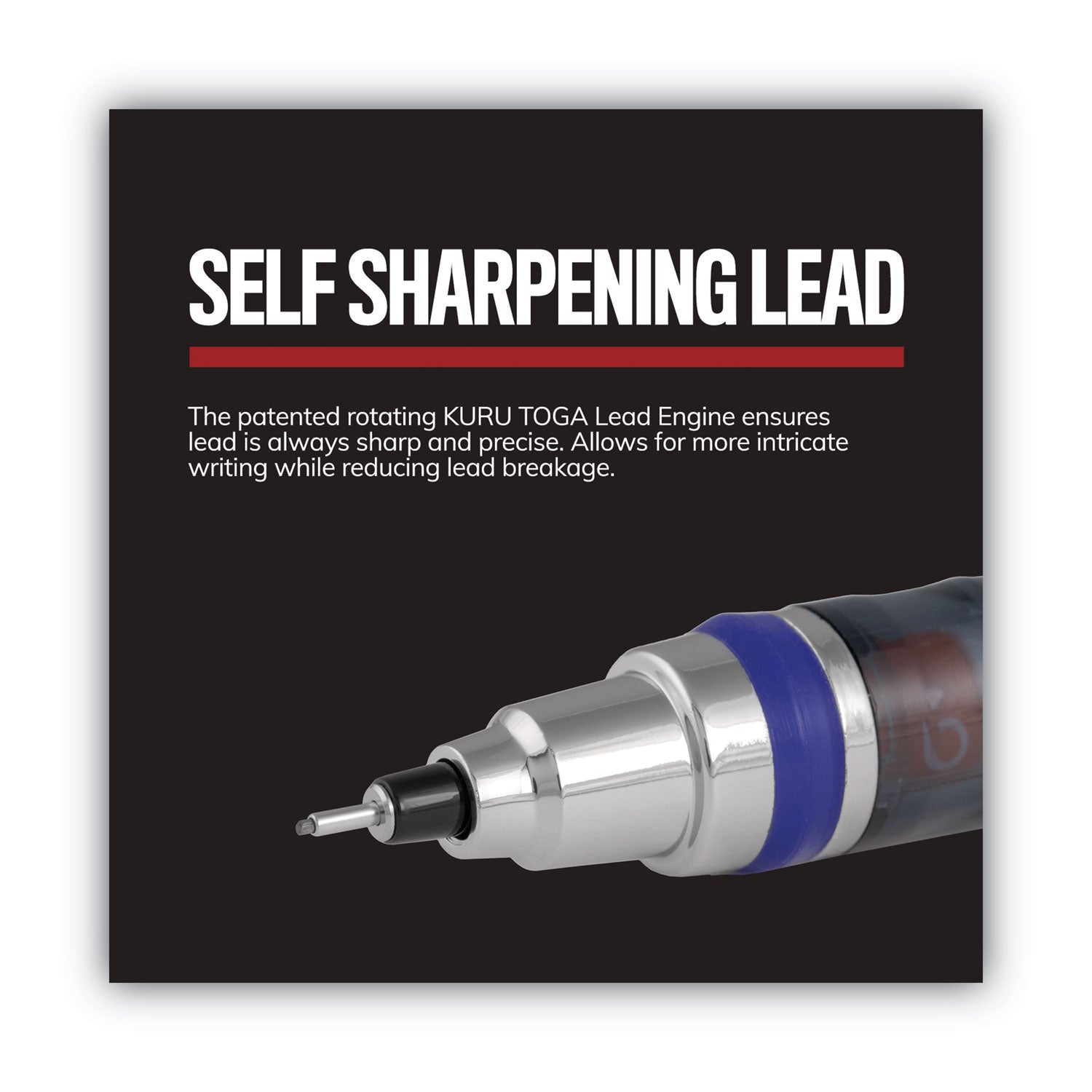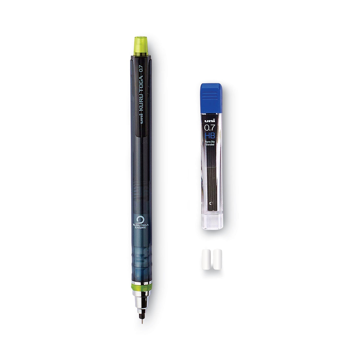 Bid farewell to dull writing and frequent lead breakage with the Kuru Toga Mechanical Pencil from uni-ball. Kuru Toga's self-sharpening lead engine ensures lead is always sharp and precise. This mechanical pencil's fine point delivers crisp and precise lines, so it's useful for a wide variety of drawing and writing tasks, including architectural drafting, sketching or taking down notes. Extra-durable diamond-infused lead creates dark, crisp lines allowing for more intricate writing while reducing lead breakage. Reusable and refillable. The pencil comes with replaceable erasers to clean up any mistakes. Grab the Kuru Toga mechanical pencil and be ready for whatever writing or drawing needs come your way.